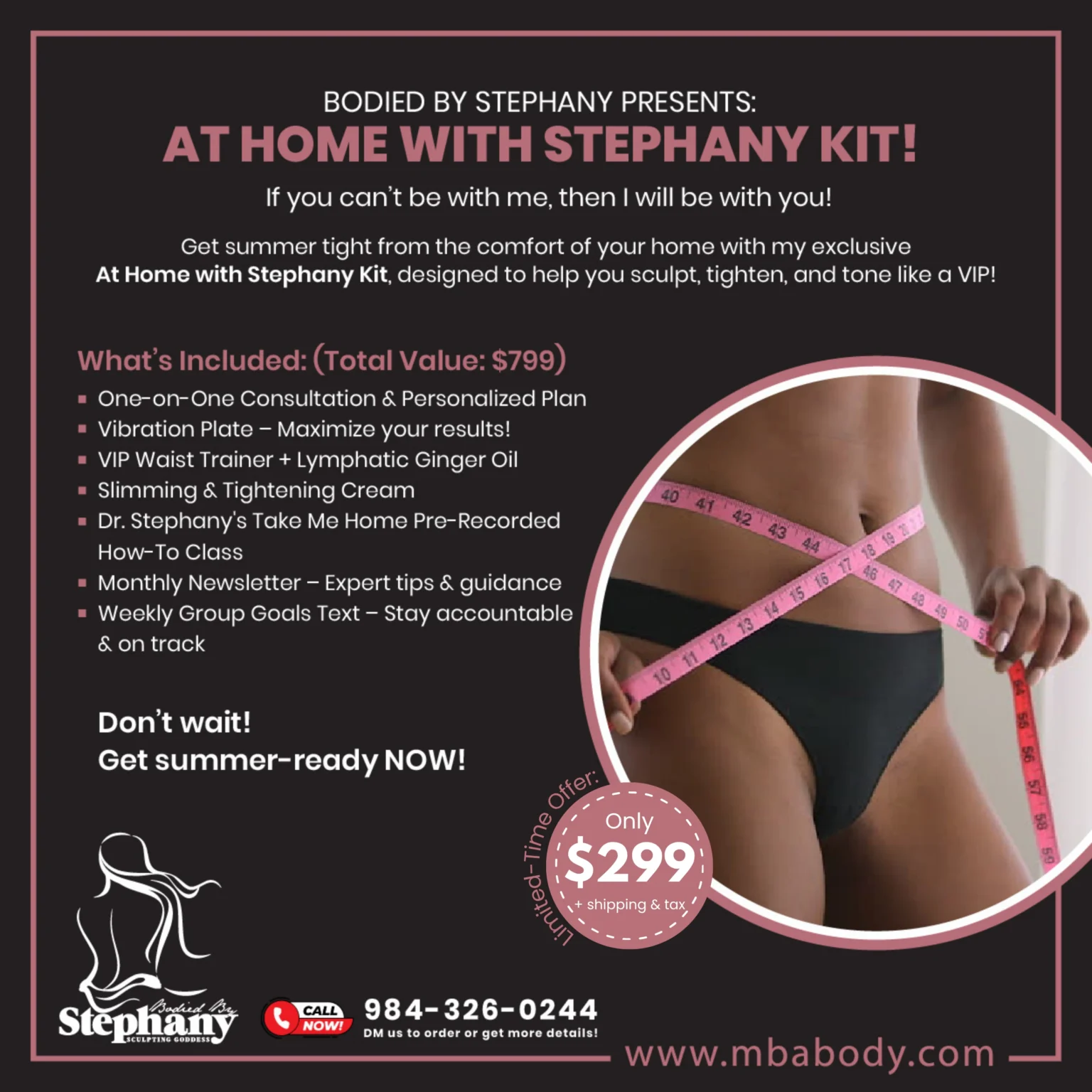 Your journey doesn’t have to wait. The At Home with Stephany Kit brings my expertise straight to your home—so even if you can’t be with me, I’ll be with you 24/7.