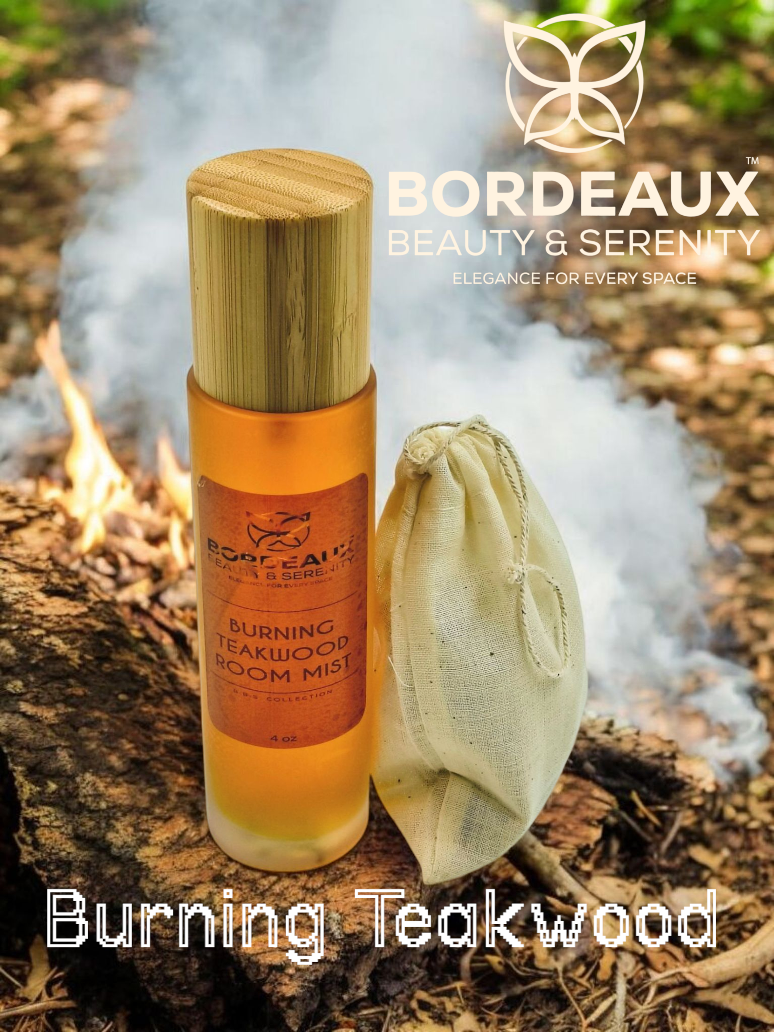 Burning Teakwood Room Mist | Bordeaux. Beauty. Serenity by The Moore Body Agency