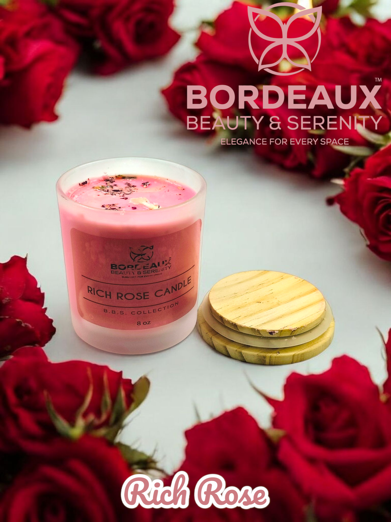 Rich Rose Soy Candle, 8 oz | Bordeaux Beauty Serenity by The Moore Body Agency