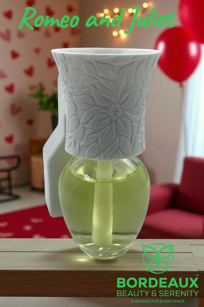 Celebrate harmony with Romeo and Juliet, a signature plug-in fragrance from the Bordeaux. Beauty. Serenity Collection by The Moore Body Agency. This enchanting blend pairs the brightness of sweet orange and grapefruit with the warmth of vanilla and the sensual touch of ylang ylang, creating a fragrance that is both invigorating and romantic. Designed for continuous scent release, it’s safe, easy to use, and perfect for enhancing the mood of any room.