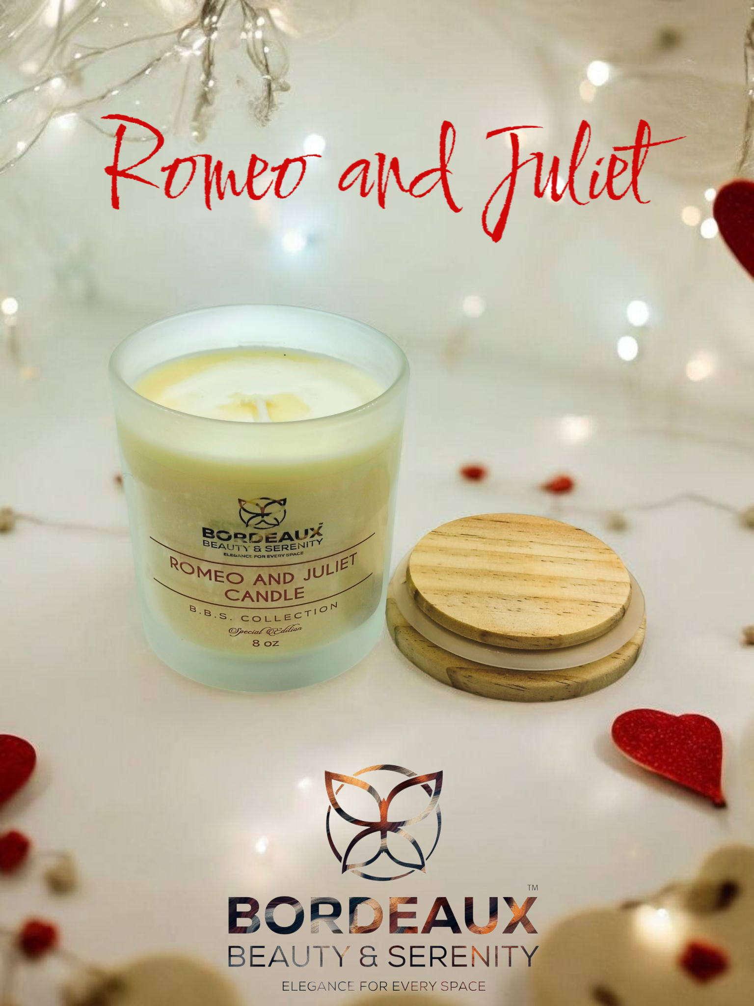 Romeo and Juliet Soy Candle, 8 oz | Bordeaux Beauty Serenity by The Moore Body Agency
